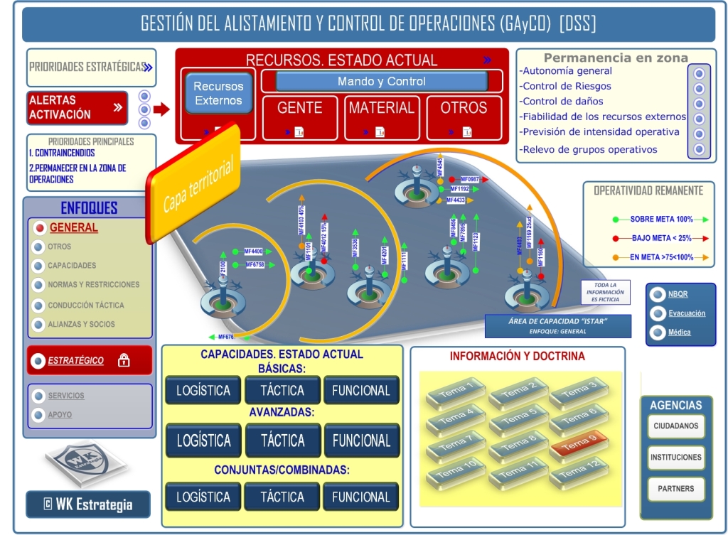 Hay diferentes modelos conceptuales, pero en WK Estrategia entrelazamos toda la información relevante. El plan estratégico y el control operativo. En este enlace puede ver cómo. Está centrado en las operaciones y los objetivos (representados mediante los pertinentes indicadores clave de rendimiento -KPI's en inglés-) se asocian por capacidades y posiciones geográficas, pudiendo descender desde un enfoque global a otro mucho más detallado. Es una poderosa herramienta de comunicación