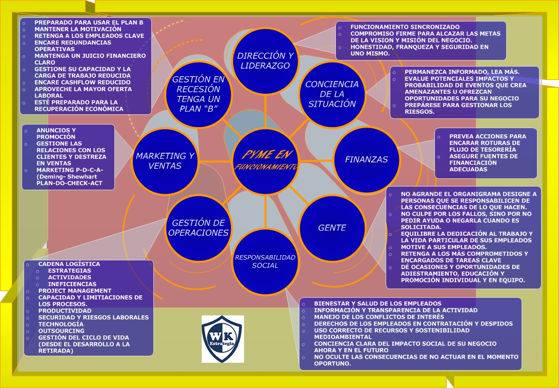 Vea en el siguiente gráfico la descripción general del enfoque que tenemos en WK Estrategia sobre mantener en marcha una PYME.