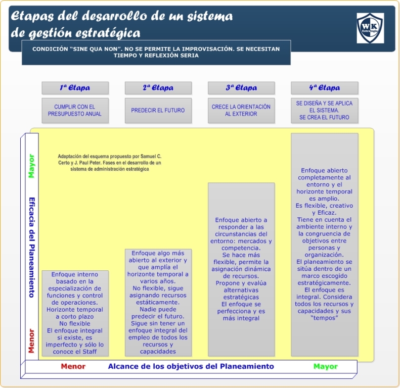 Etapas de maduración para diseñar y aplicar, dentro de una organización, un sistema adecuado para la gestión estratégica.
