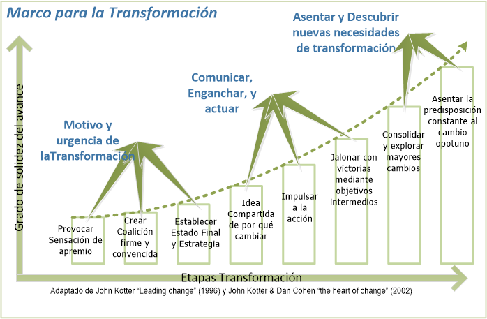 Las cambios siempre se hacen por algún motivo y eligiendo un compromiso correcto. No importa que contradiga el statu quo, si con ello se pretende alcanzar una posición mejor. El proceso no es rápido ni sencillo. Una organización solo consigue cambios duraderos cuando ha logrado cambiar los hábitos de las personas y los equipos que la hacen funcionar y mejorar antes que los adversarios.