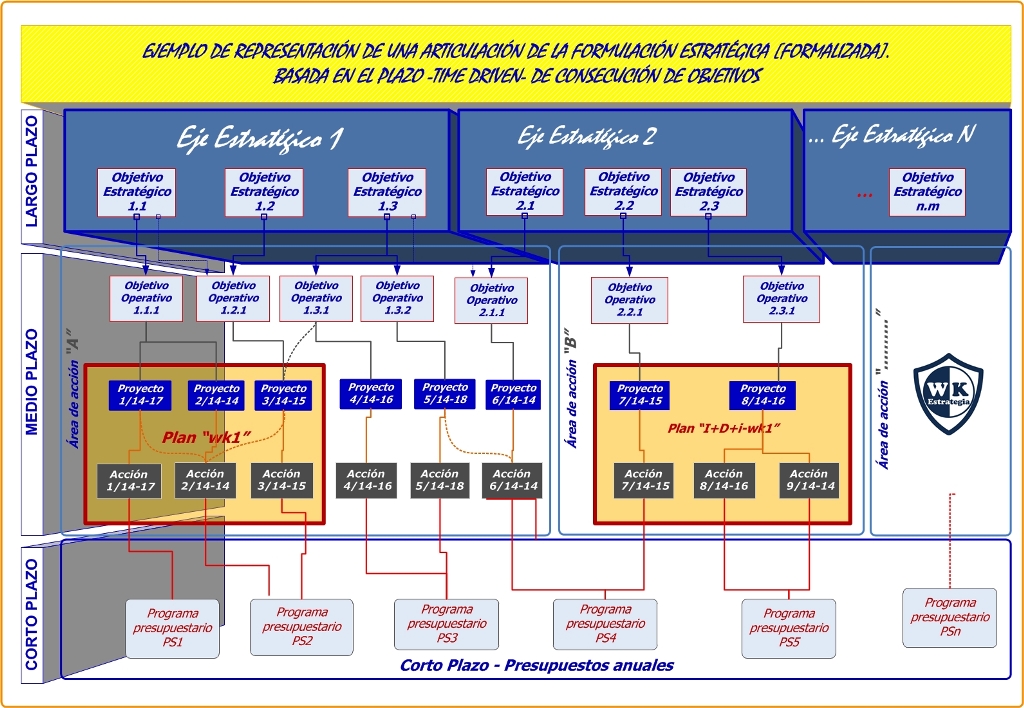 See the following depiction of a strategic formulation representing a common structure to articulate two intertwined approaches: thematic and "time-driven" according to the deadlines of the strategic goals.